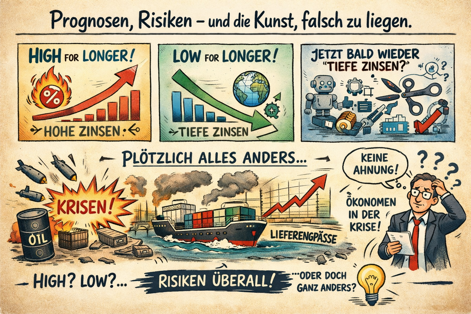 Ökonomische Prognosen haben eine bemerkenswerte Eigenschaft: In dem Moment, in dem sie entstehen, wirken sie oft überzeugend. Sie basieren auf Daten, Modellen und plausiblen Argumenten. Rückblickend wirken sie dann erstaunlich oft wie Momentaufnahmen einer Welt, die es so nicht mehr gibt.